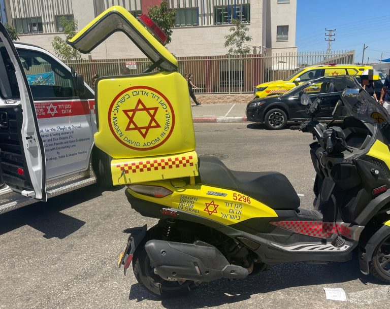 רוכבת אופניים נפגעה מרכב ברחוב טשרניחובסקי בכפר סבא. חובשים ופראמדיקים של מד"א מעניקים טיפול רפואי ומפנים לבי"ח מאיר, אישה בת 71 במצב קשה עם חבלה רב מערכתית.