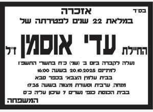 22 שנה לזכרה של החיילת עדי אוסמן ז"ל