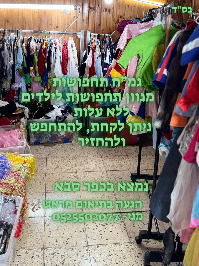זקוקים לתחפושת ? אולי תמצאו את שחשקה נפשו של ילדכם אצל מגי אפגן הצדקת משכונת עליה בכפר סבא. תחפושות נהדרות לילדים בלבד