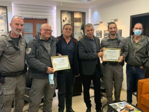 ראש העיר העניק תעודת הוקרה לפקחי השיטור העירוני שתפסו שבוע שעבר 2 חשודים על אופנוע גנוב בעיר