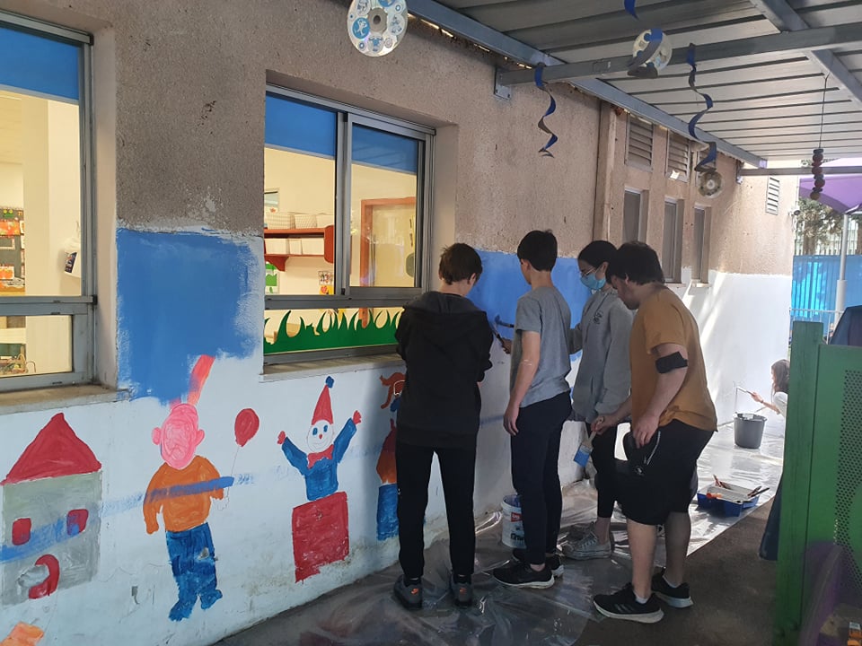 כל הכבוד: תלמידי כתה ט4 מחטיבת גוונים בקדימה הגיעו לצבוע את מעון נעמת ספיר בעיר