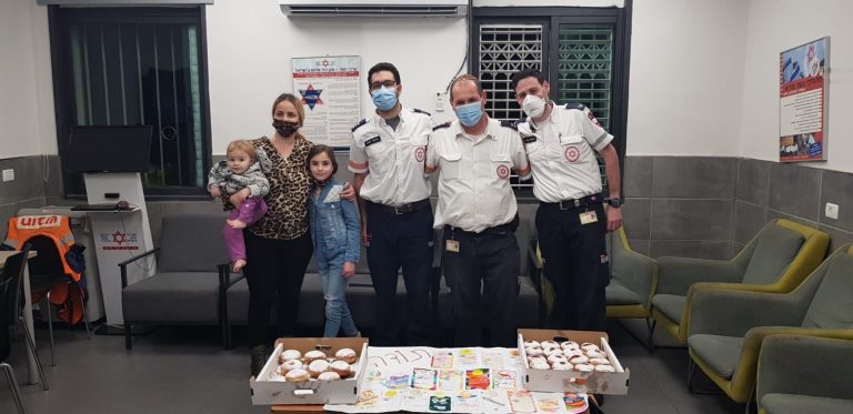 ביה”ס יצחק שדה בכפר סבא: התלמידים וההורים חילקו סופגניות לשוטרים, כבאים וקשישים